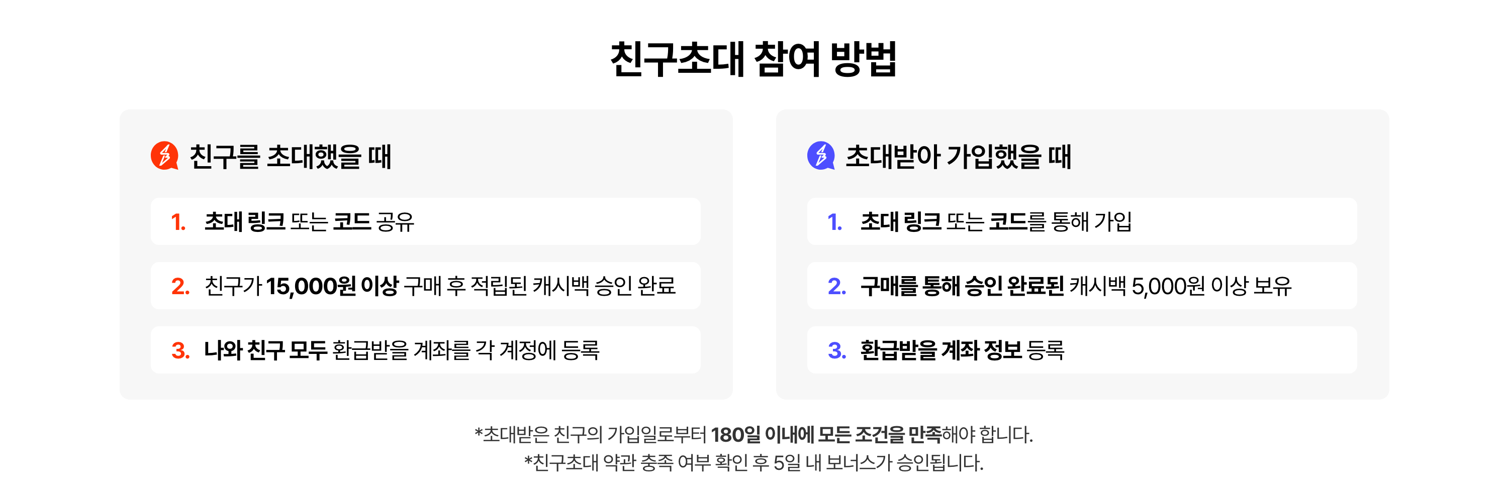 추천인 등록, 캐시백이벤트, 카카오톡 채널추가를 통해 추가 캐시백 받아가세요!